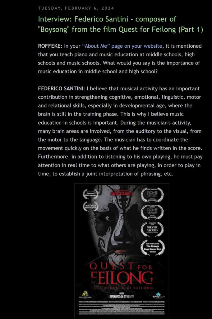 Premiazione X World Short Film Festival come Outstanding Project With Young People per la partecipazione dei giovani alunni nella regsitrazione della colonna sonora che ho composto per il cortometraggio “Quest for Feilong”.